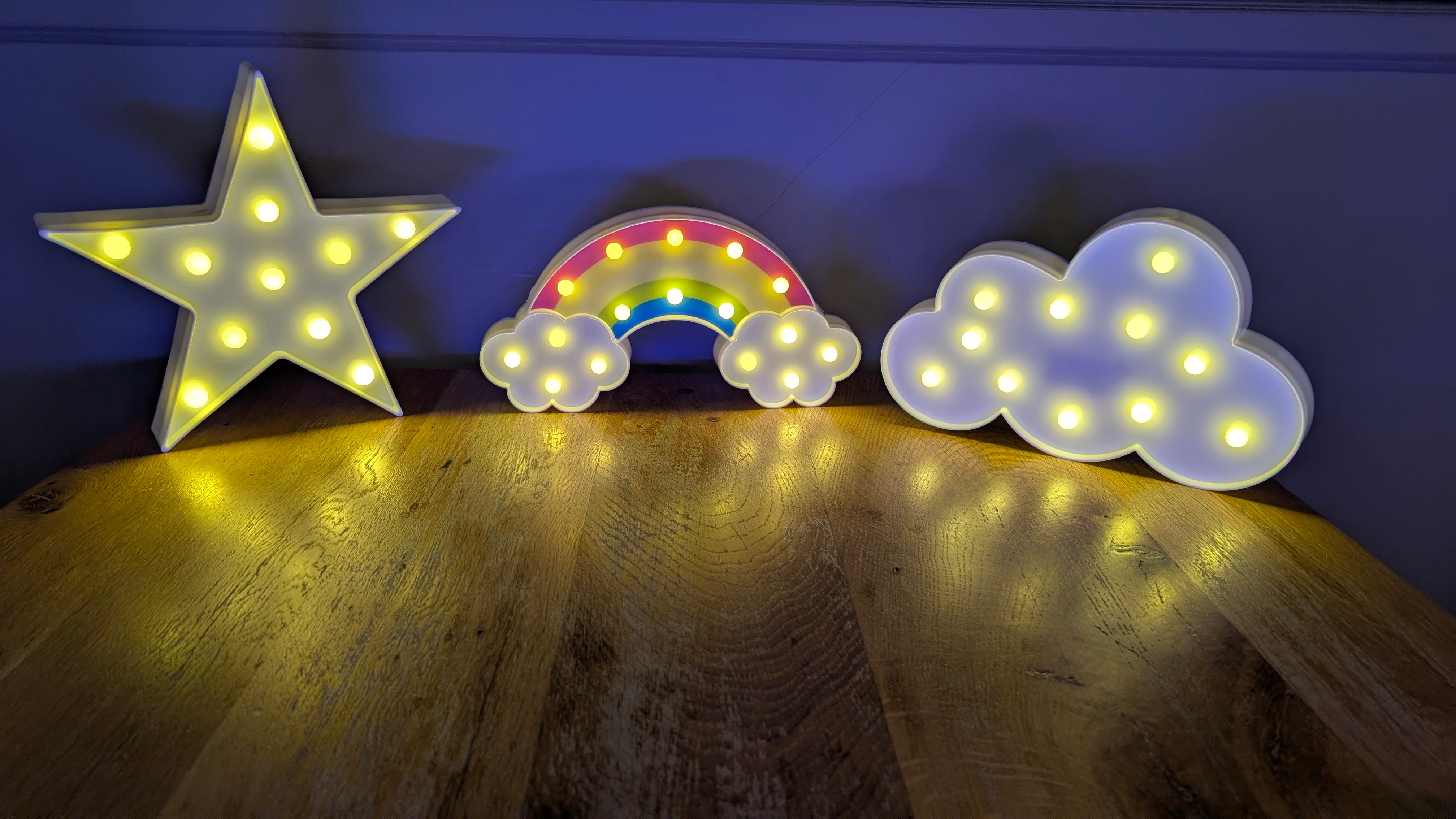 Kompakt ve taşınabilir tasarımı sayesinde başucu, komodin, raf ya da oyun köşesinde dilediğiniz yere kolayca konumlandırabilirsiniz. Pil ile çalıştığı için kablo derdi yoktur—çocuk odasında daha güvenli ve düzenli bir kullanım sağlar. Enerji tasarruflu LED teknolojisiyle hem dekoratif hem de ekonomik bir çözüm sunar.